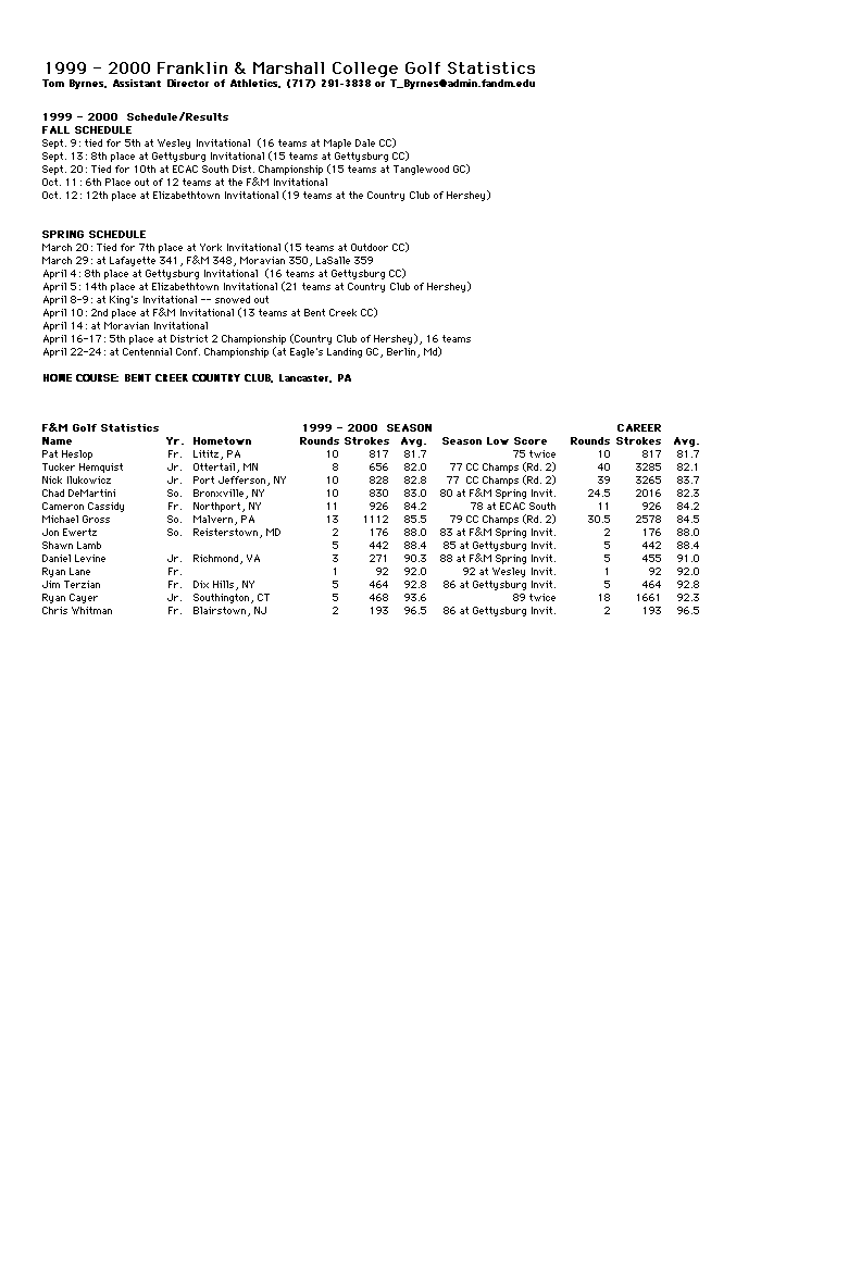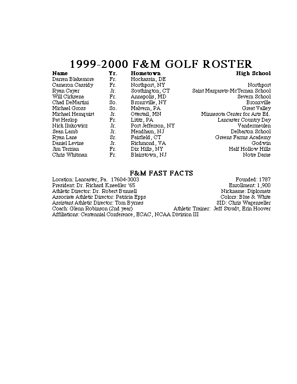 1999-00 Schedule Roster Stats Team Photo News