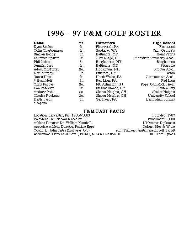 1996-97 Schedule Roster Stats Team Photo News