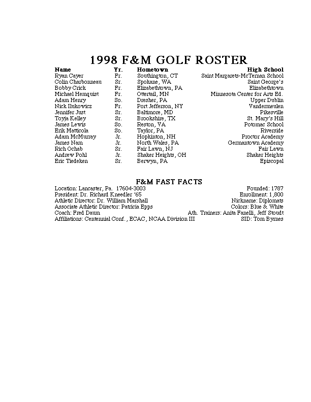 1998-99 Schedule Roster Stats Team Photo News